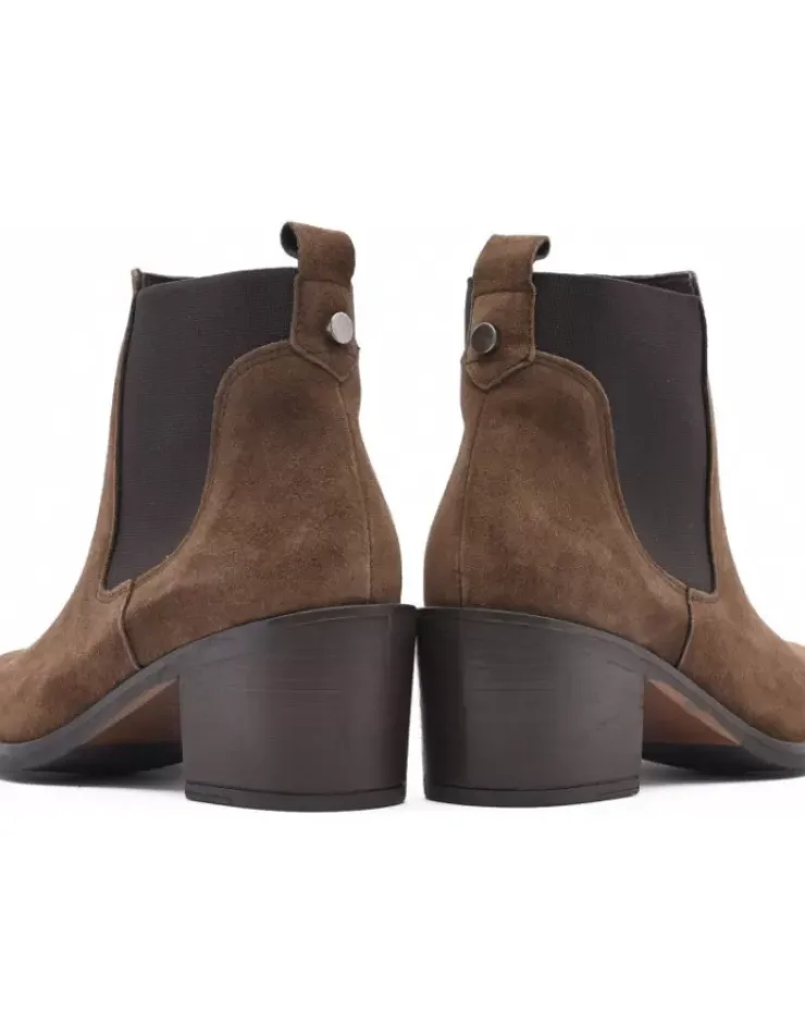 Botin Para Mujer Alpe Anne, Fabricado En Piel (Baby Silk) De Color Arabica Con Tacon De 5,5 Cm, Suela Antideslizante Y Puntera Redonda, Sin Cierre Y Cana Baja.