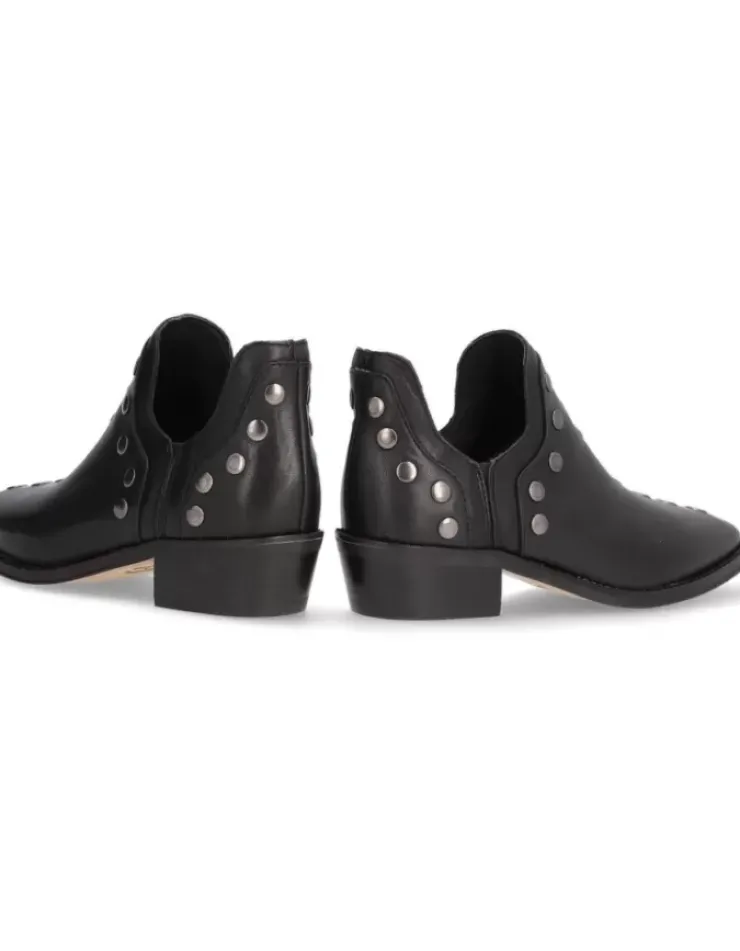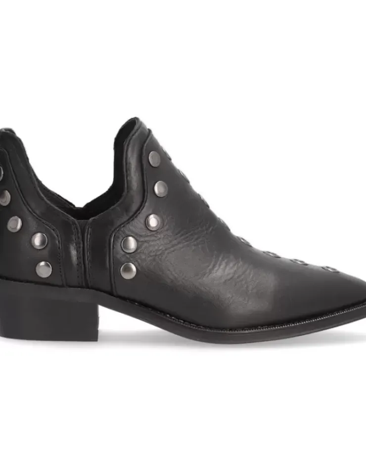 Botin Para Mujer Alpe Cecile, Fabricado En Piel (Becerro) De Color Negro Con Tacon De 4 Cm, Suela Antideslizante Y Puntera Afilada, Sin Cierre Y Cana Baja.