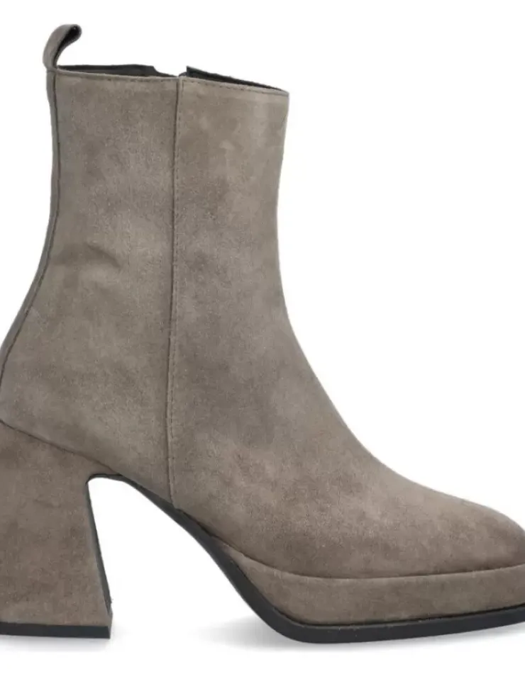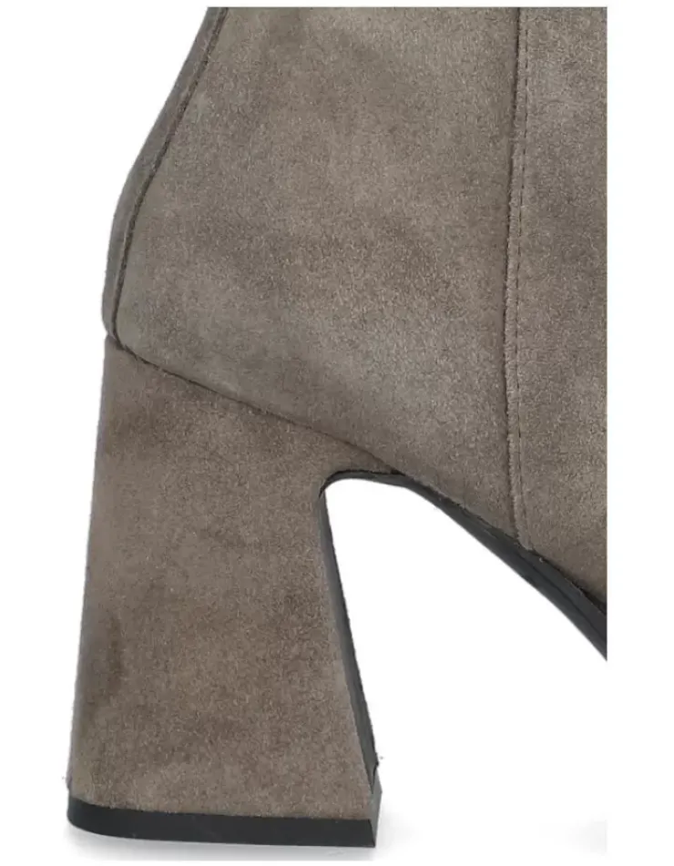 Botin Para Mujer Alpe Idanna, Fabricado En Piel (Baby Silk) De Color Taiga Con Tacon De 8,5 Cm, Suela Antideslizante Y Puntera Cuadrada, Con Cierre Mediante Cremallera Y Cana Baja.