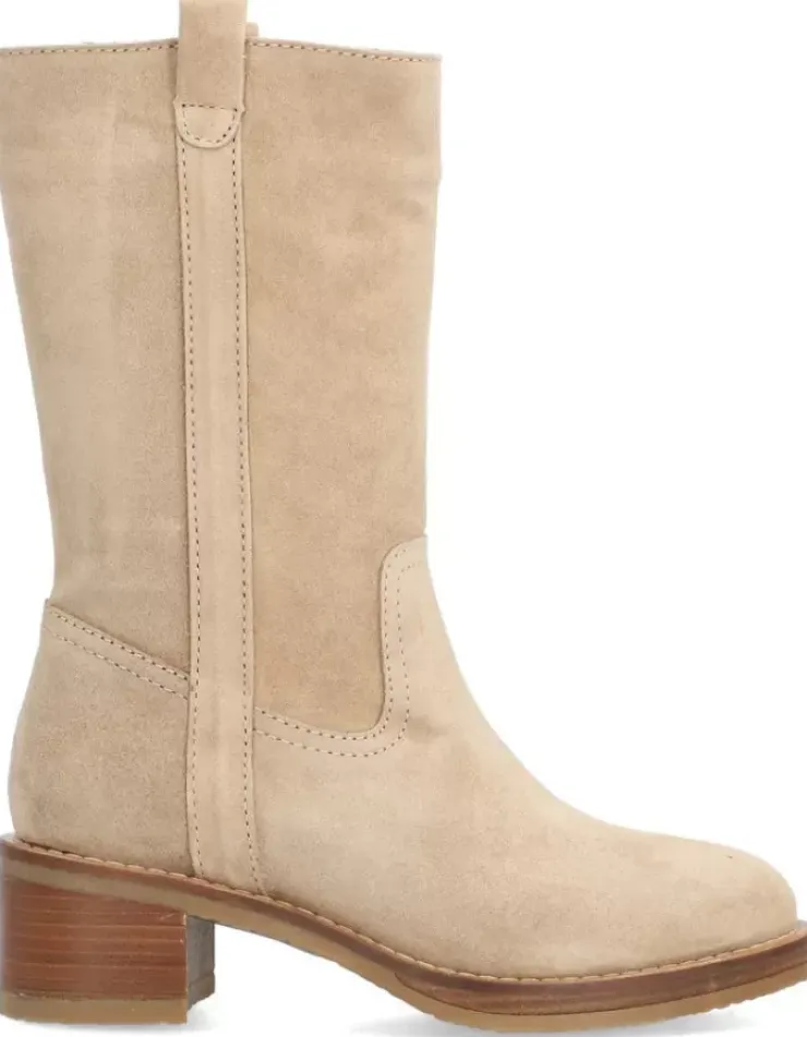 Bota Para Mujer Alpe Madame, Fabricada En Piel (Baby Silk) De Color Noisette Con Tacon De 5 Cm, Suela Antideslizante Y Puntera Redonda, Sin Cierre Y Cana Media.
