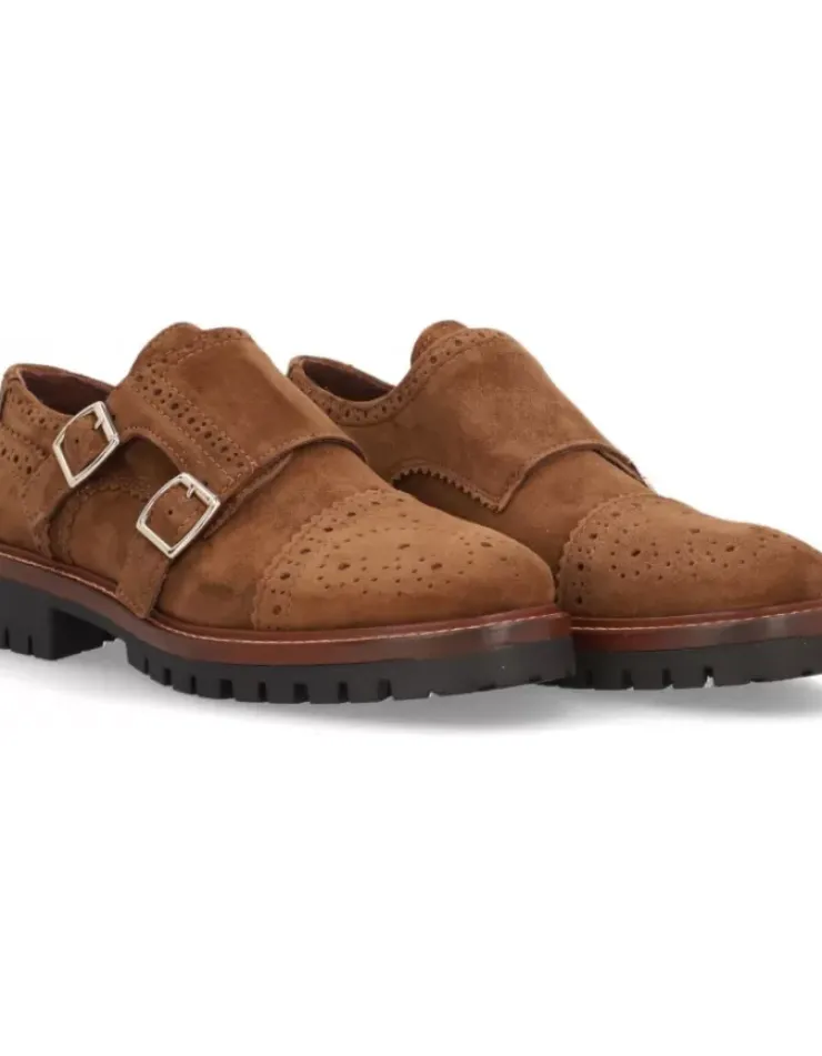 Zapato Para Mujer Alpe Militare, Fabricado En Piel (Baby Silk) De Color Castaa Con Tacon De 3,5 Cm, Suela Antideslizante Y Puntera Redonda, Con Cierre Mediante Hebilla.