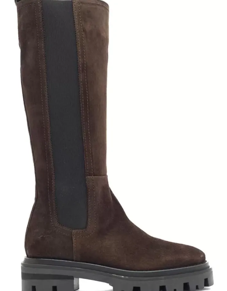 Bota Para Mujer Alpe Monza, Fabricada En Piel (Baby Silk) De Color Cafe Con Tacon De 5 Cm, Suela Antideslizante Y Puntera Redonda, Con Cierre Mediante Cremallera Y Cana Alta.