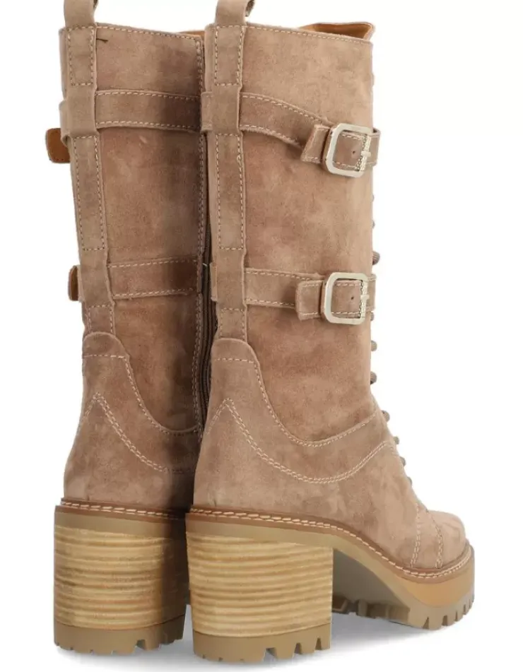Bota Para Mujer Alpe New Amelie, Fabricada En Piel (Baby Silk) De Color Bryce Con Tacon De 7 Cm, Suela Antideslizante Y Puntera Redonda, Con Cierre Mediante Cremallera Y Cana Alta.