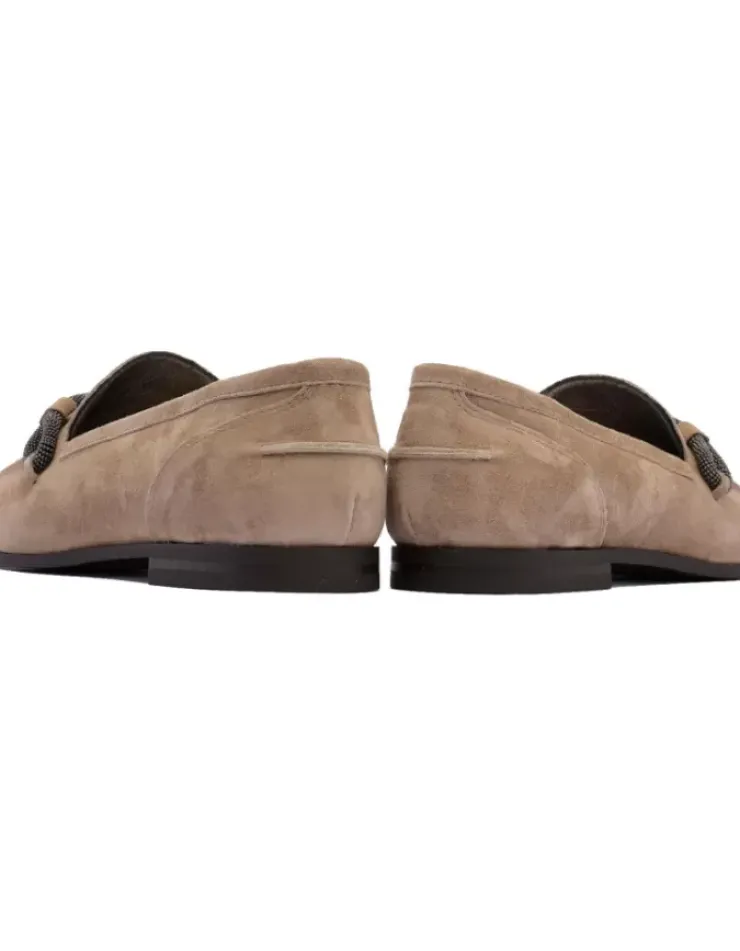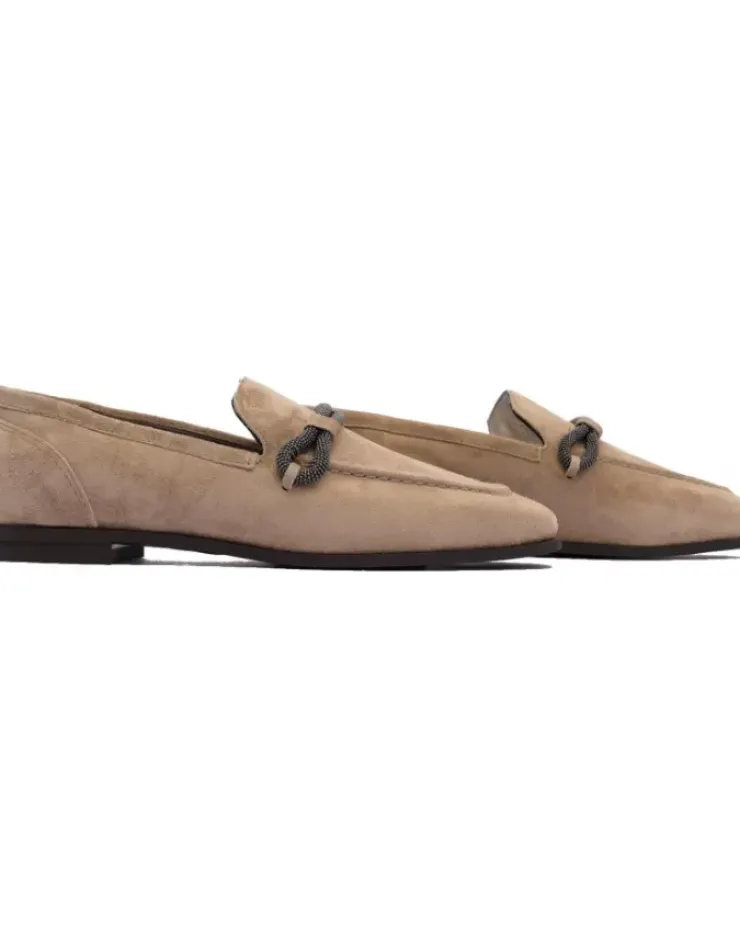 Mocasin Para Mujer Alpe New Roma, Fabricado En Piel (Baby Silk) De Color Dessert Con Sin Tacon De 1 Cm, Suela Antideslizante Y Puntera Cuadrada, Sin Cierre.