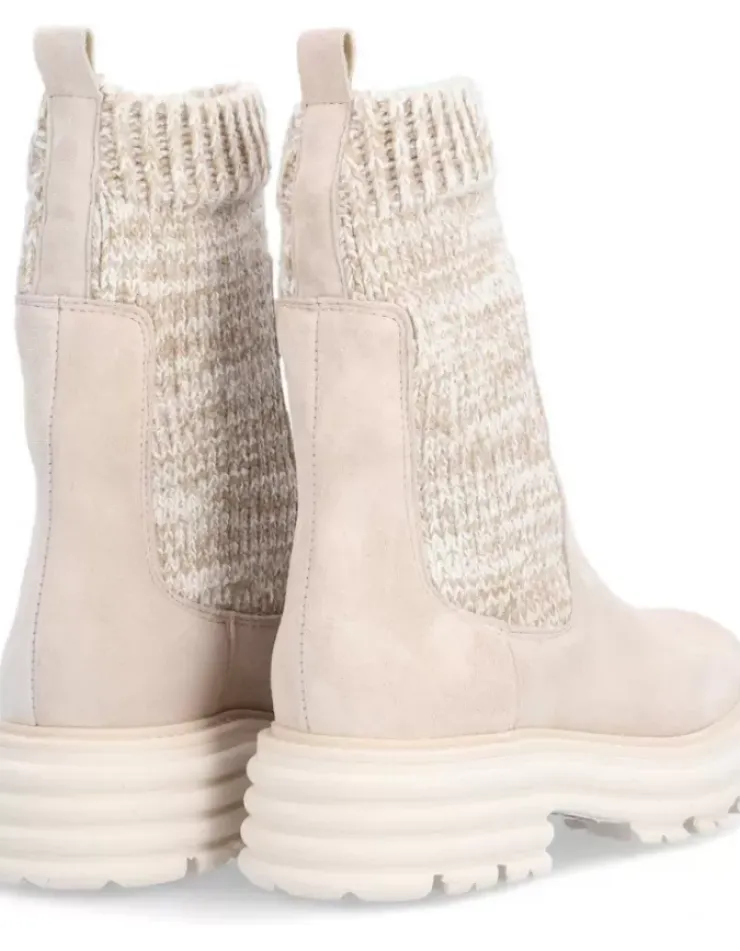 Bota Para Mujer Alpe Alabama, Fabricada En Piel (Baby Silk) De Color Calcare Con Tacon De 5 Cm, Suela Antideslizante Y Puntera Redonda, Sin Cierre Y Cana Media.