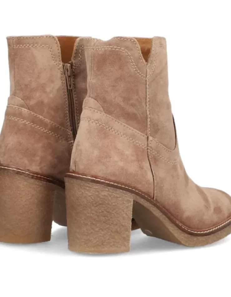 Botin Para Mujer Alpe Crep, Fabricado En Piel (Baby Silk) De Color Bryce Con Tacon De 8 Cm, Suela Antideslizante Y Puntera Afilada, Con Cierre Mediante Cremallera Baja.