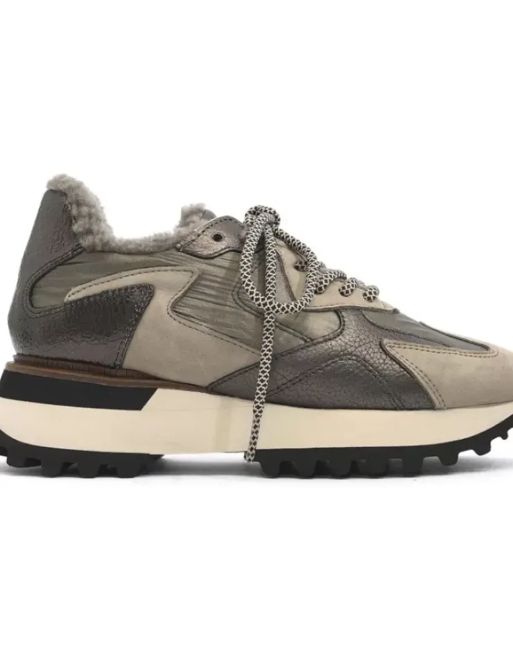 Sneaker Deportivo Para Mujer Alpe Estella, Fabricado En Piel (Multi) De Color Kaki Sin Tacon, Suela Antideslizante Y Puntera Redonda, Con Cierre Mediante Cordon.