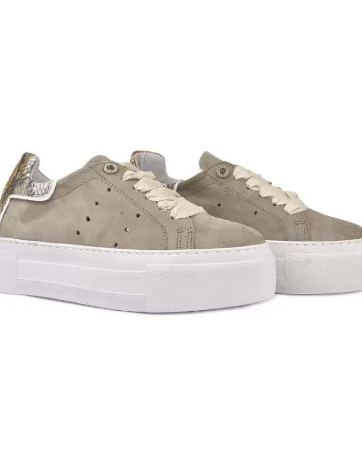 Sneaker Fabricada En Piel De Color Kaky.