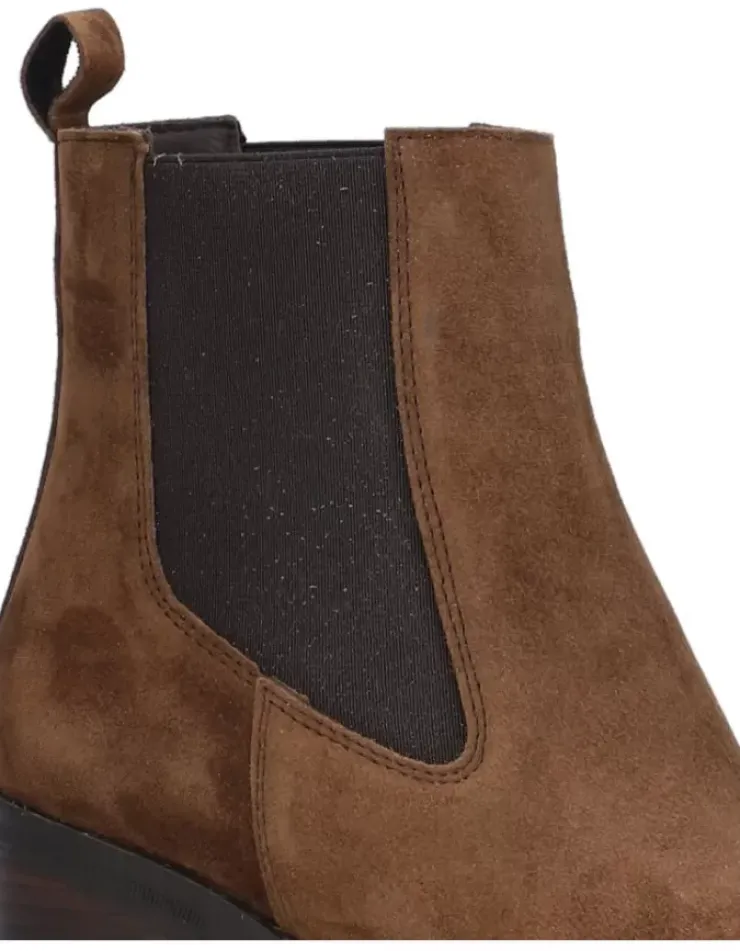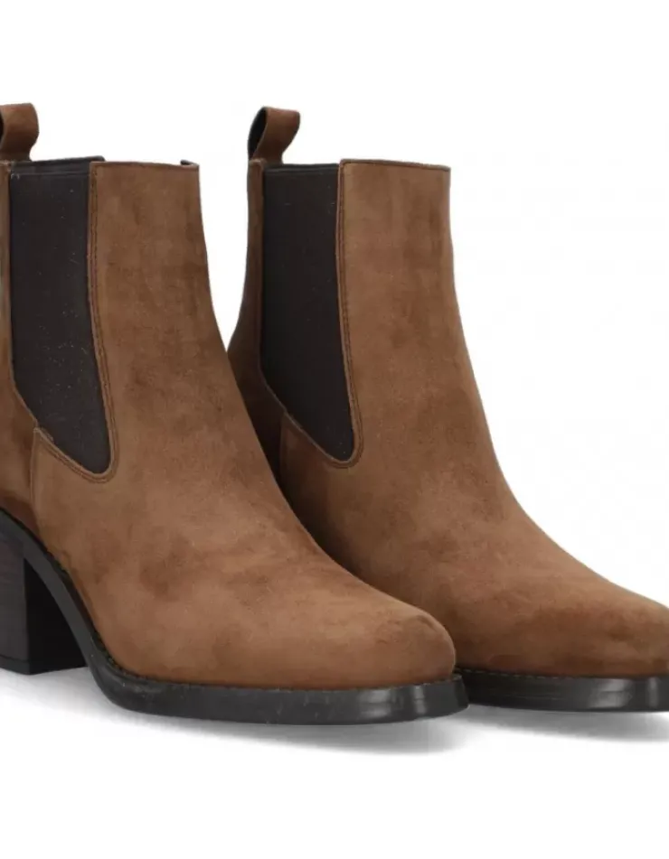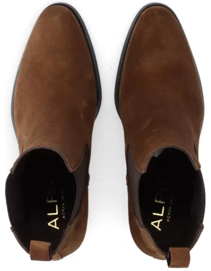 Botin Para Mujer Alpe Leyna, Fabricado En Piel (Baby Silk) De Color Castaa Con Tacon De 7 Cm, Suela Antideslizante Y Puntera Redonda, Sin Cierre Y Cana Baja.