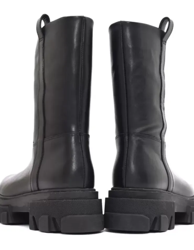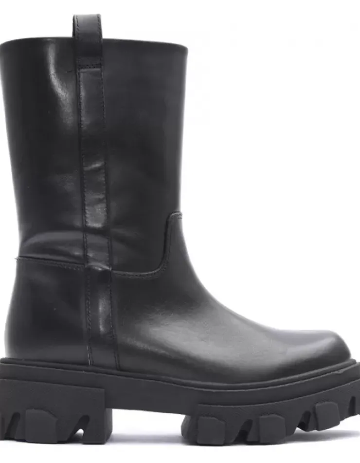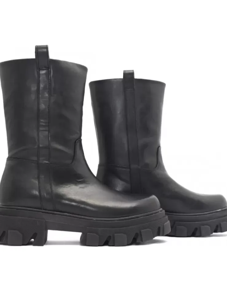 Bota Para Mujer Alpe Liverpool, Fabricada En Piel (Tripoli) De Color Negro Con Tacon De 5 Cm, Suela Antideslizante Y Puntera Redonda, Sin Cierre Y Cana Media.