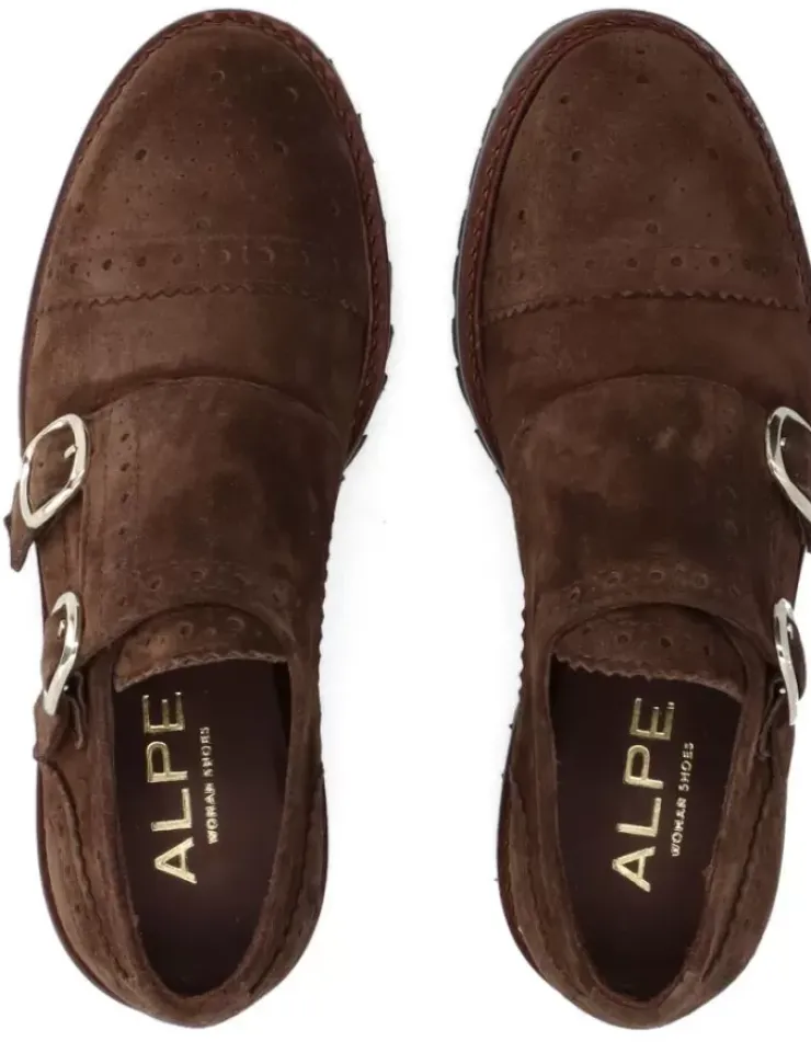 Zapato Para Mujer Alpe Militare, Fabricado En Piel (Baby Silk) De Color Arabica Con Tacon De 3,5 Cm, Suela Antideslizante Y Puntera Redonda, Con Cierre Mediante Hebilla.