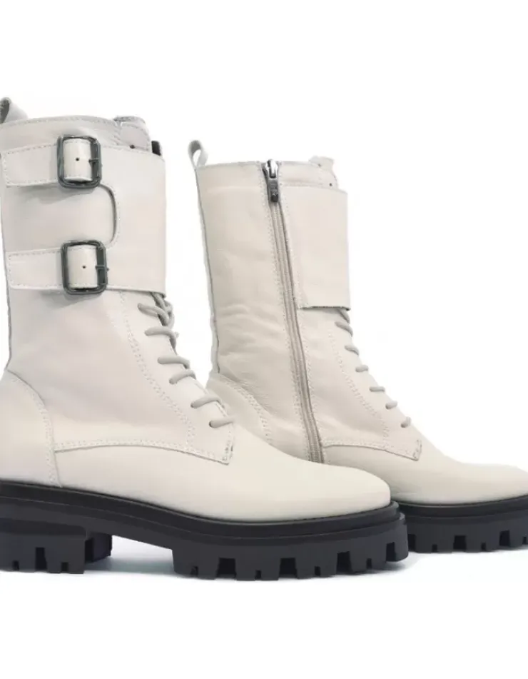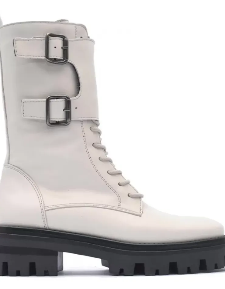Bota Para Mujer Alpe Monza, Fabricada En Piel (Seta) De Color Artico Con Tacon De 5 Cm, Suela Antideslizante Y Puntera Redonda, Con Cierre Mediante Cremallera Y Cana Media.