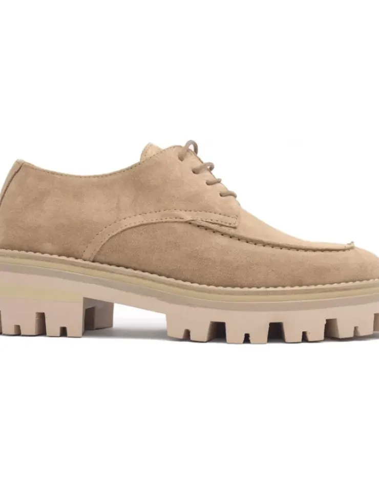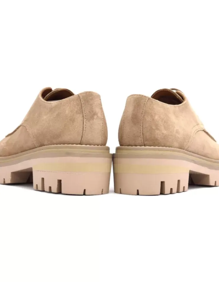 Zapato Para Mujer Alpe Monza, Fabricado En Piel (Baby Silk) De Color Canela Con Tacon De 5 Cm, Suela Antideslizante Y Puntera Redonda, Con Cierre Mediante Cordon.