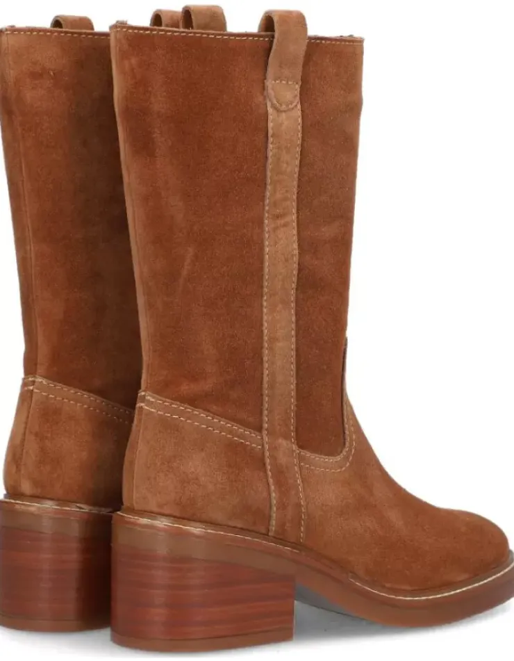 Bota Para Mujer Alpe Trento, Fabricada En Piel (Baby Silk) De Color Sella Con Tacon De 5,5 Cm, Suela Antideslizante Y Puntera Redonda, Sin Cierre Y Cana Media.