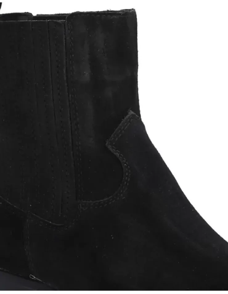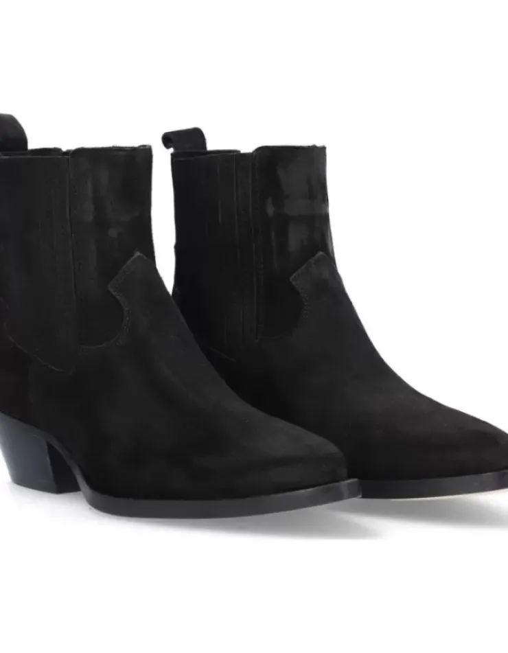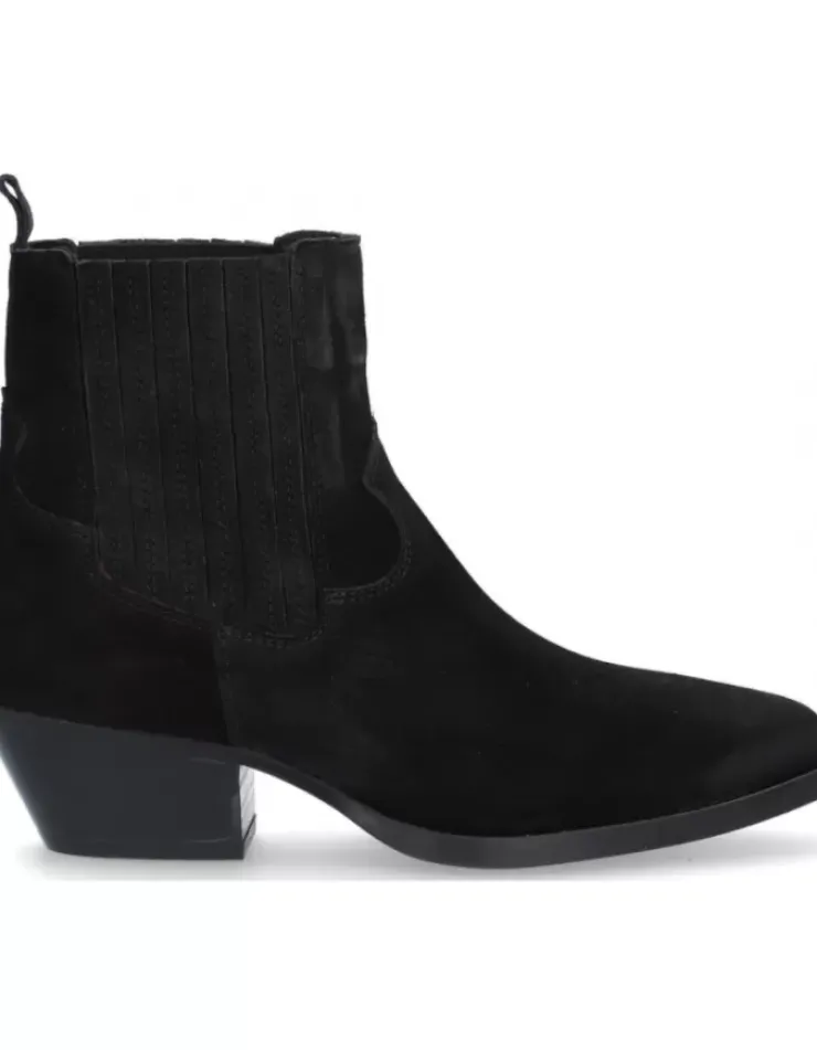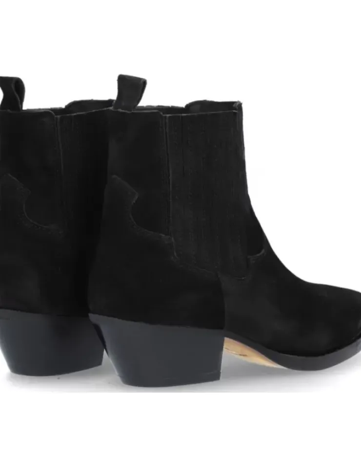 Botin Para Mujer Alpe Western, Fabricado En Piel (Baby Silk) De Color Negro Con Tacon De 4,5 Cm, Suela Antideslizante Y Puntera Afilada, Sin Cierre Y Cana Baja.