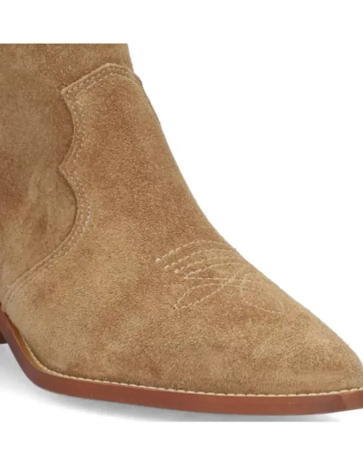 Botin Para Mujer Alpe Trendy, Fabricado En Piel (Baby Silk) De Color Cuero Con Tacon De 4,5 Cm, Suela Antideslizante Y Puntera Afilada, Con Cierre Mediante Cremallera Y Cana Baja.