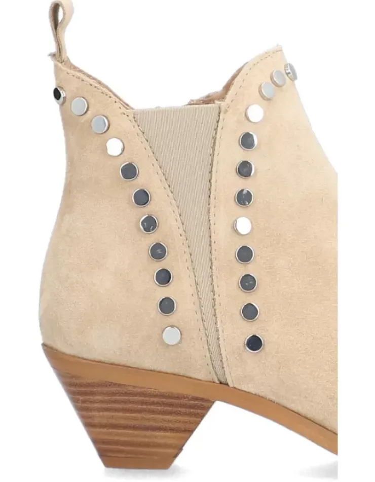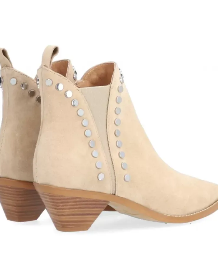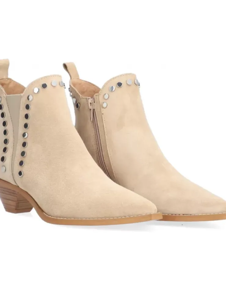 Botin Para Mujer Alpe Trendy, Fabricado En Piel (Baby Silk) De Color Arena Con Tacon De 4,5 Cm, Suela Antideslizante Y Puntera Afilada, Con Cierre Mediante Cremallera Y Cana Baja.
