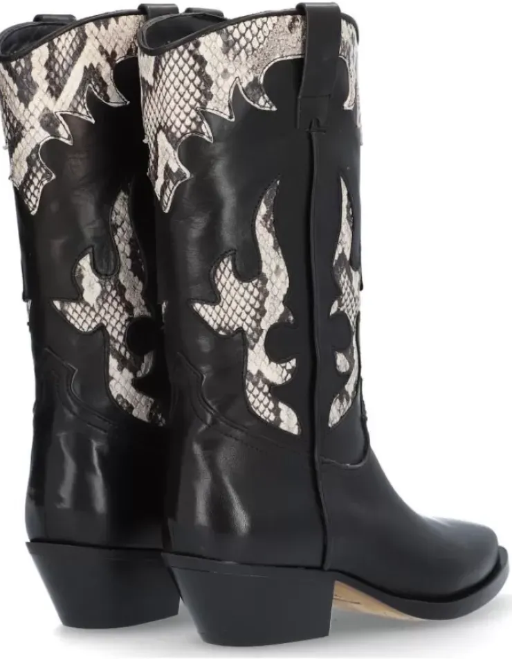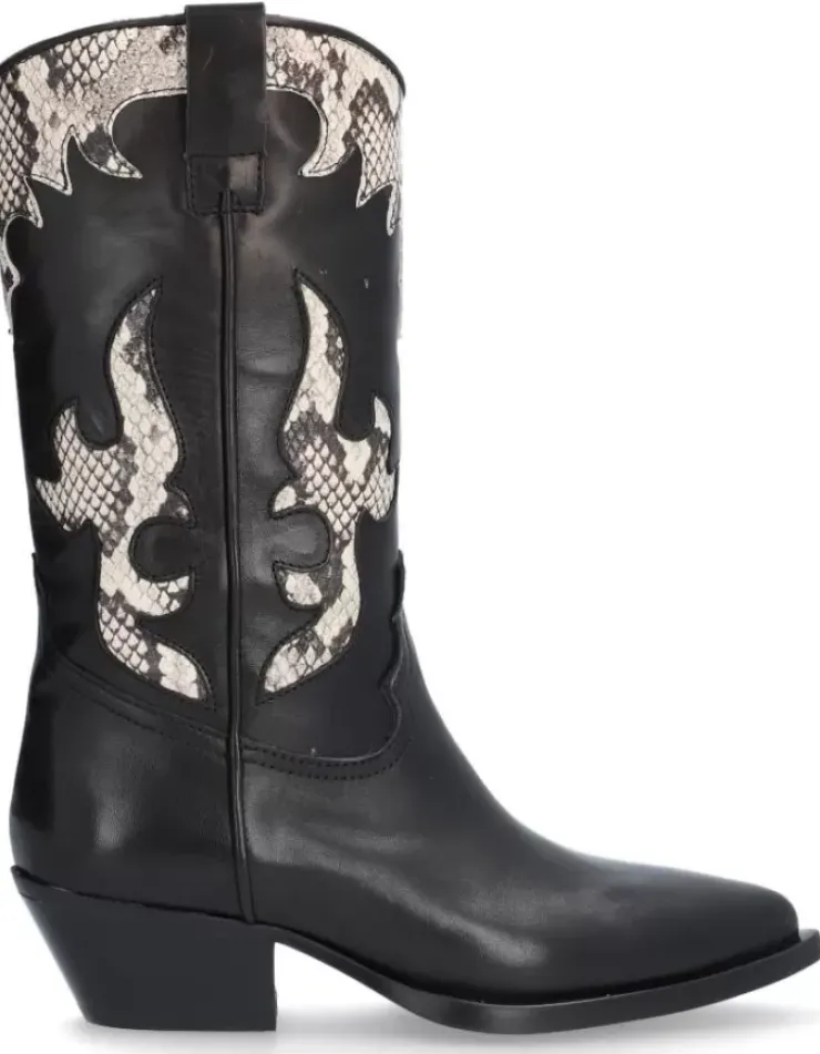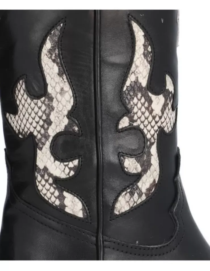 Bota Para Mujer Alpe Western, Fabricada En Piel (Piton) De Color Negro Con Tacon De 4,5 Cm, Suela Antideslizante Y Puntera Afilada, Sin Cierre Y Cana Media.
