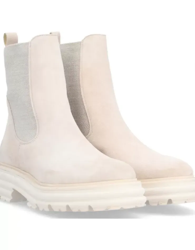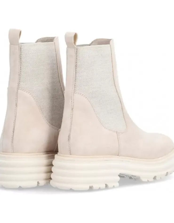 Bota Para Mujer Alpe Alabama, Fabricada En Piel (Baby Silk) De Color Calcare Con Tacon De 5 Cm, Suela Antideslizante Y Puntera Redonda, Sin Cierre Y Cana Media.