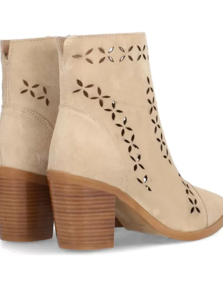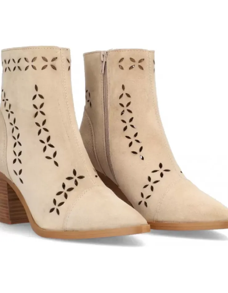 Botin Para Mujer Alpe Alina, Fabricado En Piel (Baby Silk) De Color Arena Con Tacon De 6,5 Cm, Suela Antideslizante Y Puntera Afilada, Con Cierre Mediante Cremallera Y Cana Baja.