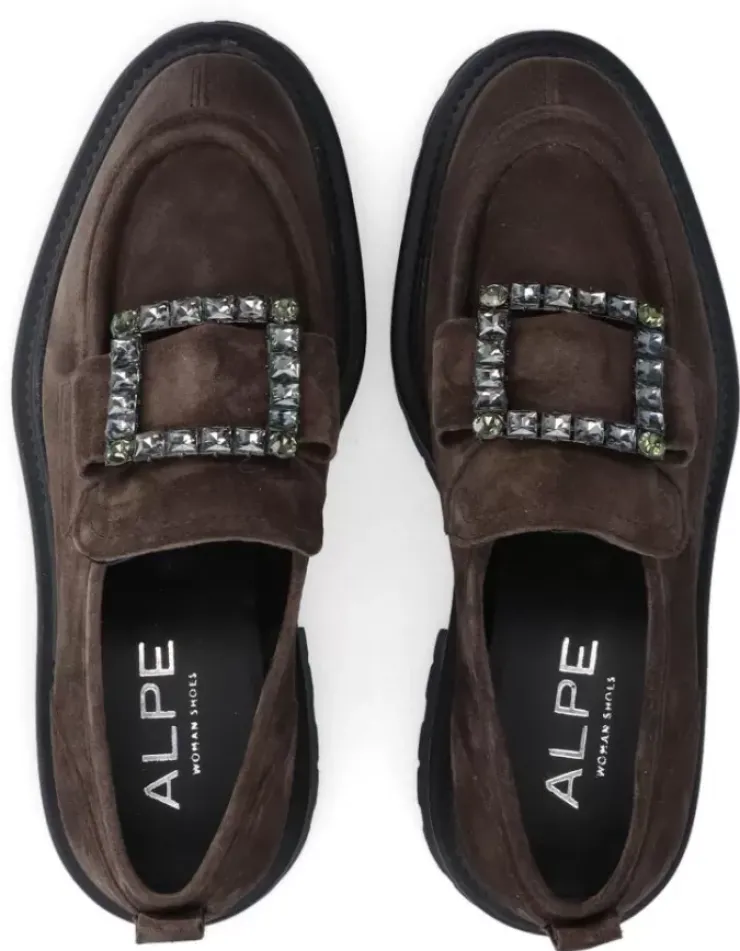 Zapato Para Mujer Alpe Clay, Fabricado En Piel (Baby Silk) De Color Iman Con Tacon De 3 Cm, Suela Antideslizante Y Puntera Redonda, Sin Cierre.