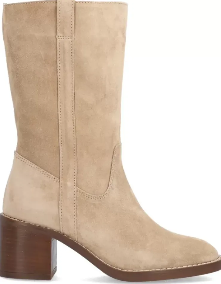 Bota Para Mujer Alpe Covent, Fabricada En Piel (Baby Silk) De Color Noisette Con Tacon De 6,5 Cm, Suela Antideslizante Y Puntera Redonda, Sin Cierre Y Cana Media.