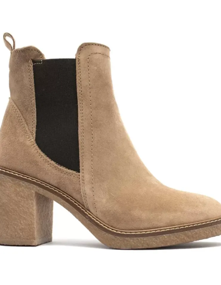 Botin Para Mujer Alpe Crep, Fabricado En Piel (Baby Silk) De Color Canela Con Tacon De 7,5 Cm, Suela Antideslizante Y Puntera Redonda, Sin Cierre Y Cana Baja.