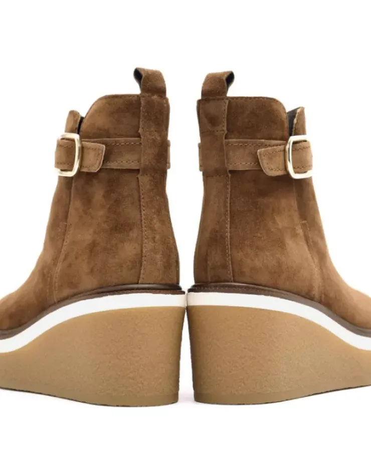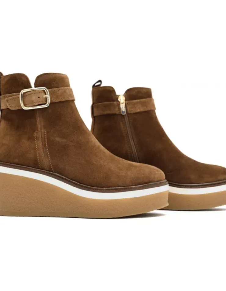 Botin Para Mujer Alpe Kiara, Fabricado En Piel (Baby Silk) De Color Cuero Sin Tacon, Suela Antideslizante Y Puntera Redonda, Con Cierre Mediante Cremallera Y Cana Baja.