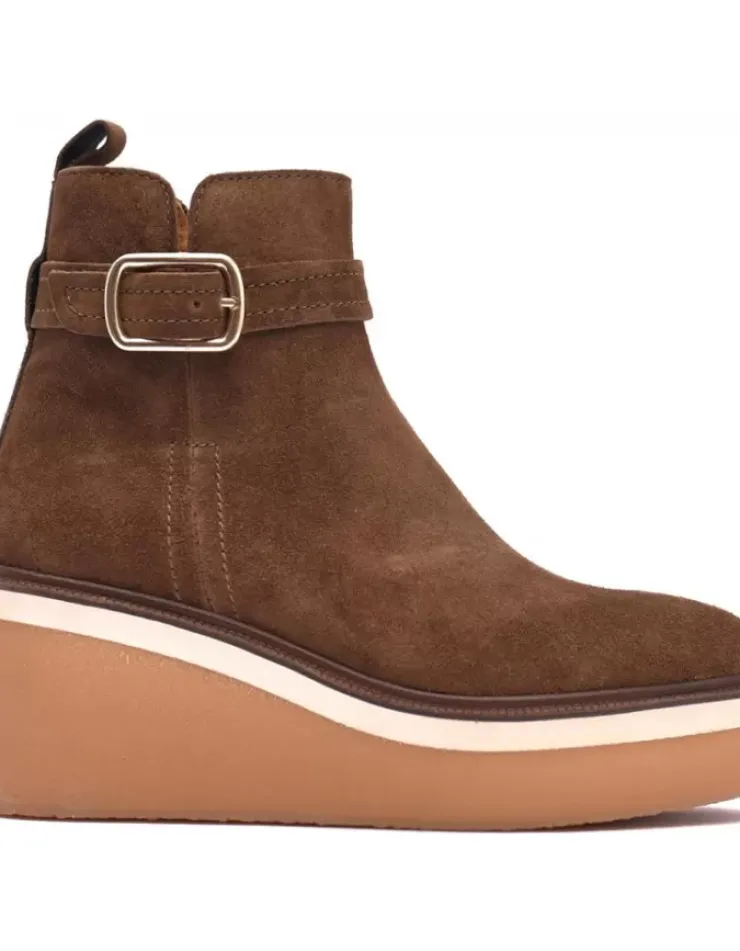 Botin Para Mujer Alpe Kiara, Fabricado En Piel (Baby Silk) De Color Castaa Sin Tacon, Suela Antideslizante Y Puntera Redonda, Con Cierre Mediante Cremallera Y Cana Baja.