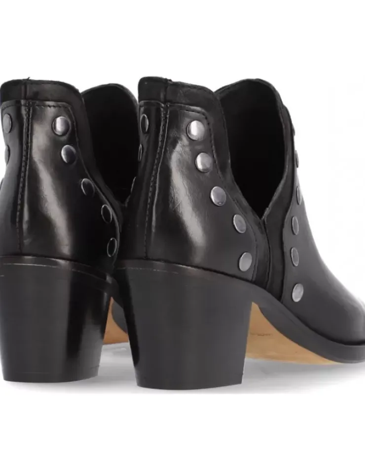 Botin Para Mujer Alpe Nevada, Fabricado En Piel (Becerro) De Color Negro Con Tacon Asimetrico De 6 Cm, Suela Antideslizante Y Puntera Afilada, Sin Cierre Y Cana Baja.