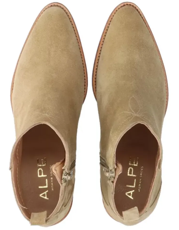 Botin Para Mujer Alpe Nevada, Fabricado En Piel (Baby Silk) De Color Tabaco Con Tacon De 5,5 Cm, Suela Antideslizante Y Puntera Afilada, Con Cierre Mediante Cremallera Y Cana Baja.
