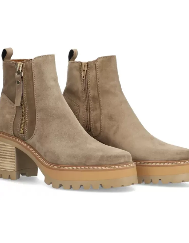 Botin Para Mujer Alpe New Amelie, Fabricado En Piel (Baby Silk) De Color Sander Con Tacon De 6 Cm, Suela Antideslizante Y Puntera Redonda, Con Cierre Mediante Cremallera Y Cana Baja.