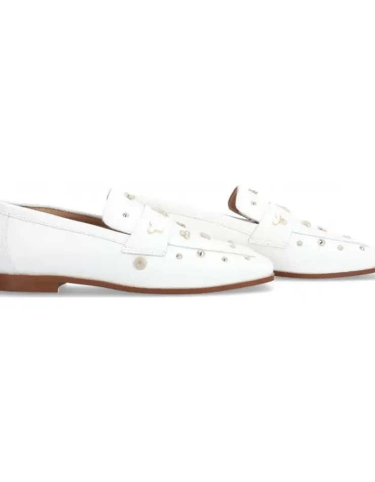 Mocasin Para Mujer Alpe New Roma, Fabricado En Piel (Tresor) De Color Blanco Con Tacon De 1,5 Cm, Suela Antideslizante Y Puntera Cuadrada, Sin Cierre.