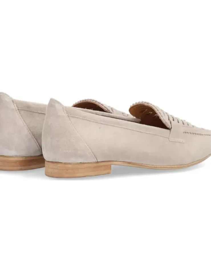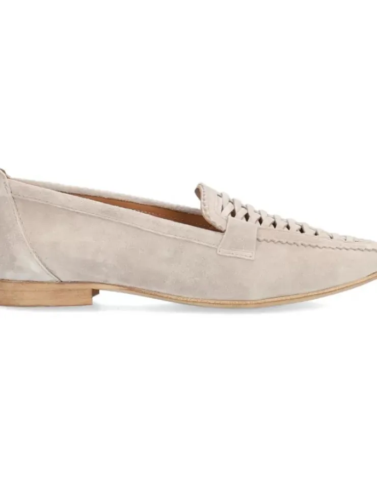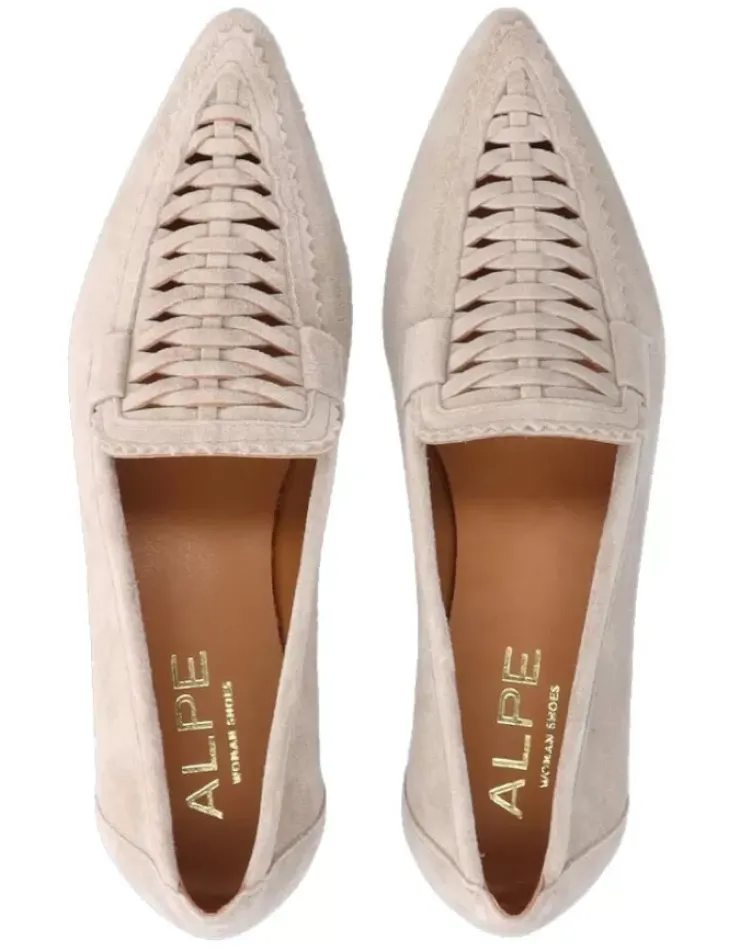 Mocasin Para Mujer Alpe Niza, Fabricado En Piel (Baby Silk) De Color Tortola Con Tacon De 1 Cm, Suela Antideslizante Y Puntera Afilada, Sin Cierre.