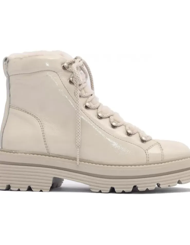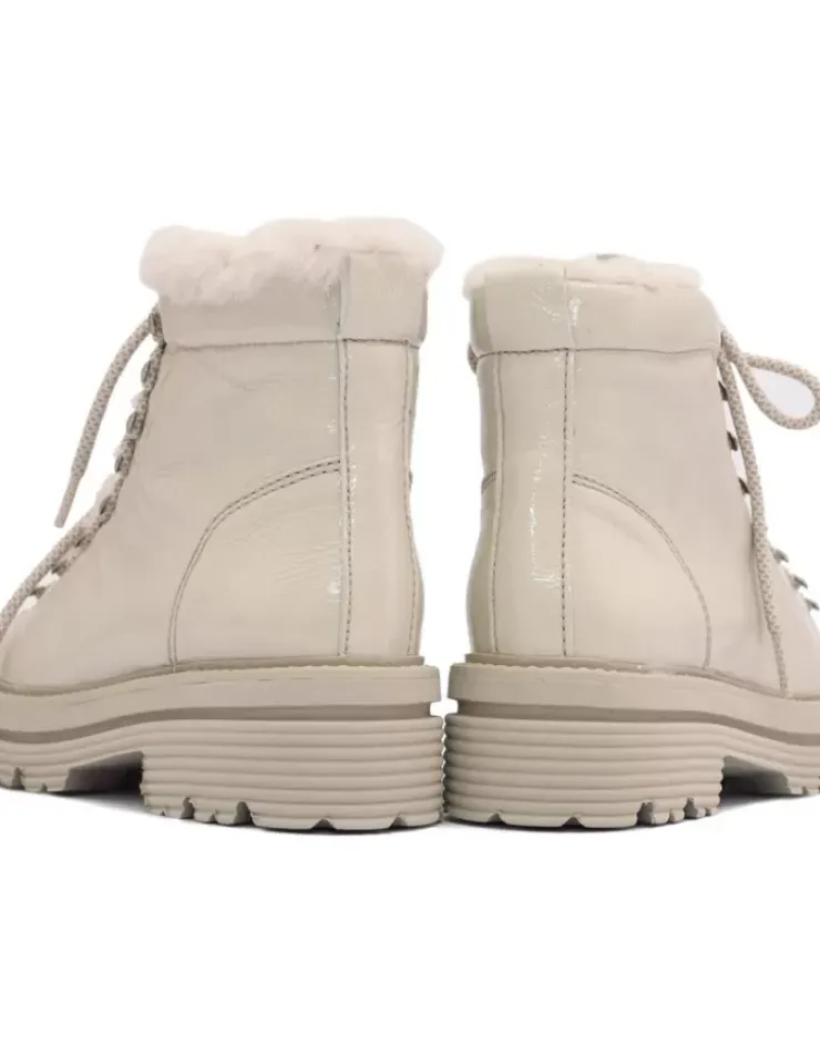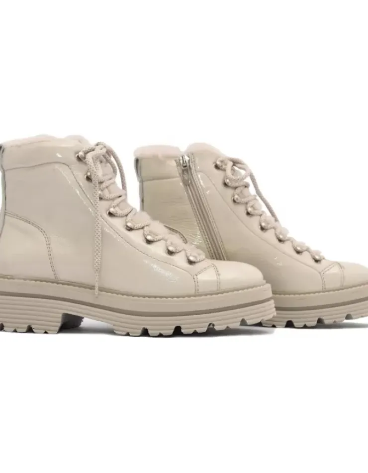 Botin Para Mujer Alpe Oslo, Fabricado En Piel (Urano) De Color Artico Con Tacon De 4,5 Cm, Suela Antideslizante Y Puntera Redonda, Con Cierre Mediante Cordon Y Cana Baja.