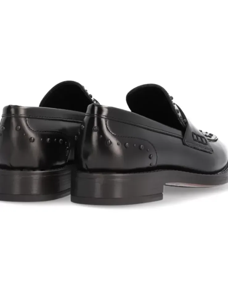 Zapato Para Mujer Alpe Thelma, Fabricado En Piel (Antic) De Color Negro Con Tacon De 3 Cm, Suela Antideslizante Y Puntera Cuadrada, Sin Cierre.