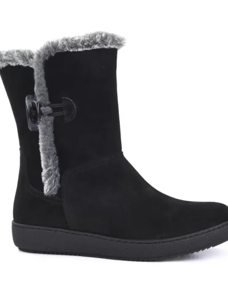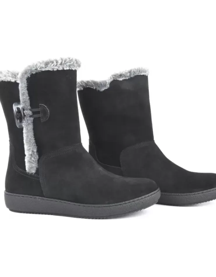Botin Para Mujer Alpe Urban, Fabricado En Piel (Baby Silk) De Color Negro Sin Tacon, Suela Antideslizante Y Puntera Redonda, Sin Cierre Y Cana Media.
