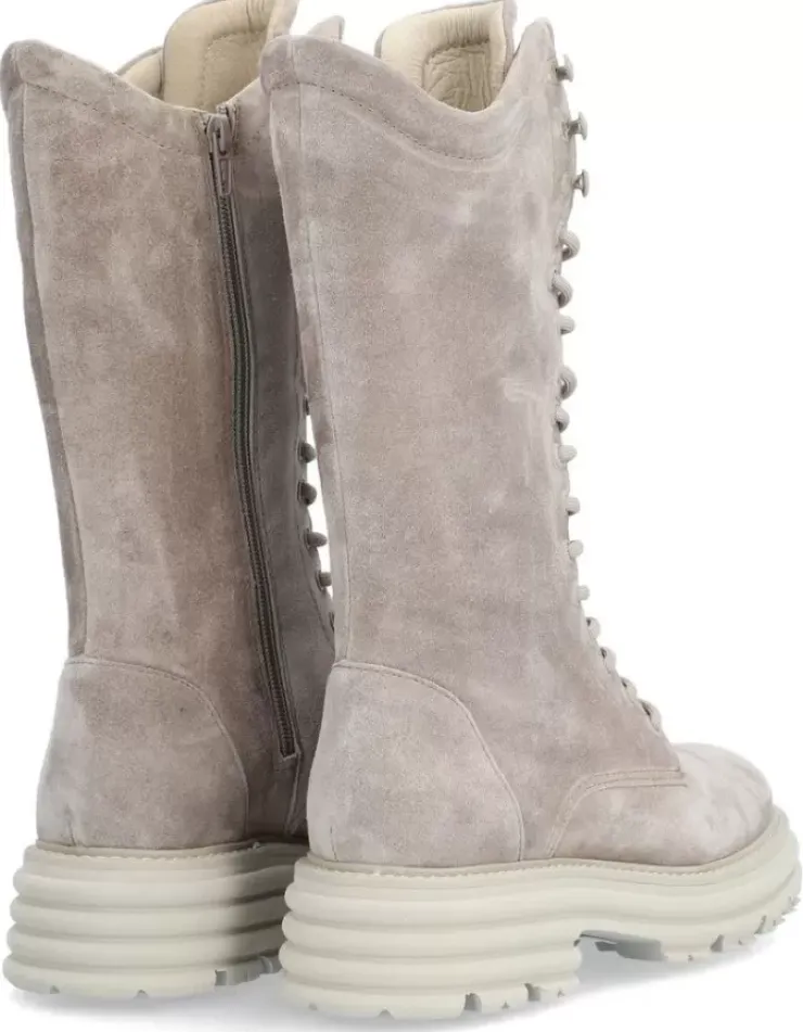 Bota Para Mujer Alpe Alabama, Fabricada En Piel (Baby Silk) De Color Taupe Con Tacon De 5 Cm, Suela Antideslizante Y Puntera Redonda, Con Cierre Mediante Cremallera Y Cana Alta.