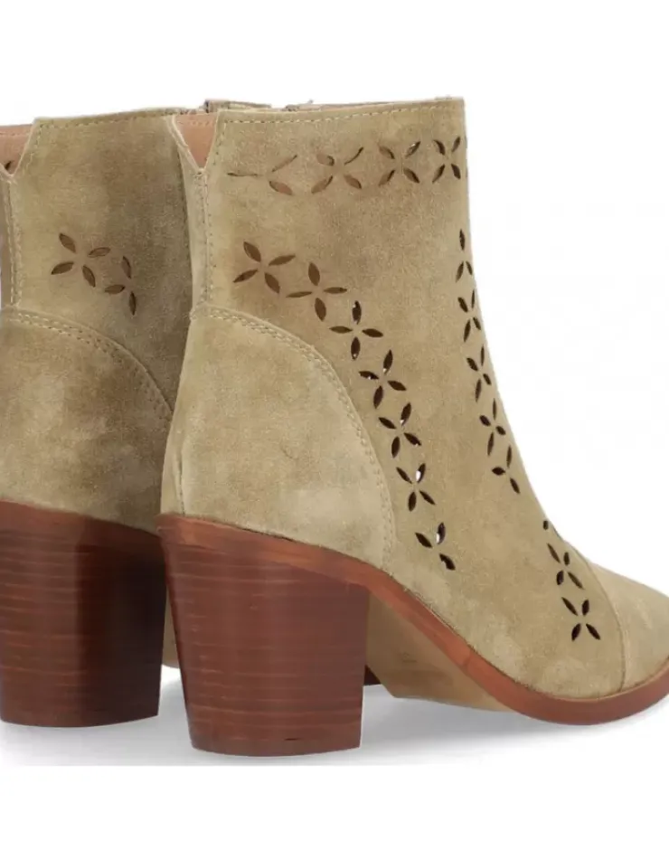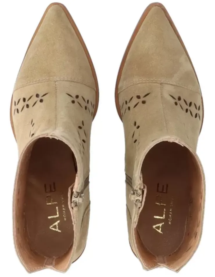 Botin Para Mujer Alpe Alina, Fabricado En Piel (Baby Silk) De Color Tabaco Con Tacon De 6,5 Cm, Suela Antideslizante Y Puntera Afilada, Con Cierre Mediante Cremallera Y Cana Baja.
