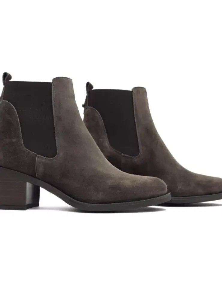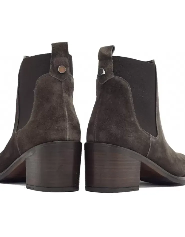 Botin Para Mujer Alpe Anne, Fabricado En Piel (Baby Silk) De Color Iman Con Tacon De 5,5 Cm, Suela Antideslizante Y Puntera Redonda, Sin Cierre Y Cana Baja.