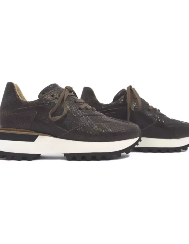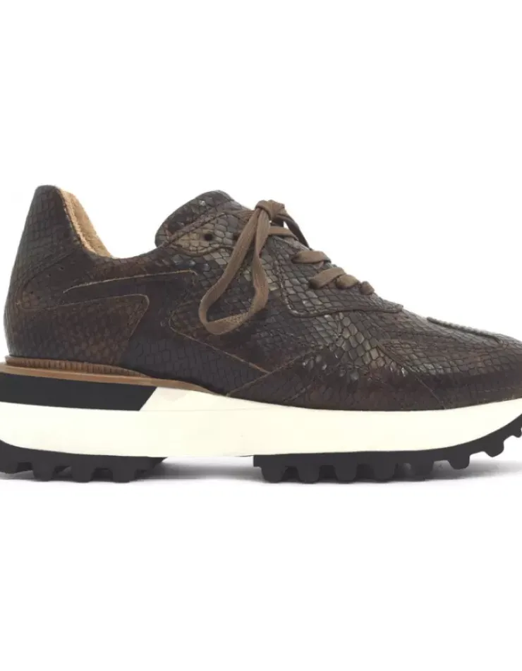 Sneaker Deportivo Para Mujer Alpe Estella, Fabricado En Piel (Cobracut) De Color Brandy Sin Tacon, Suela Antideslizante Y Puntera Redonda, Con Cierre Mediante Cordon.