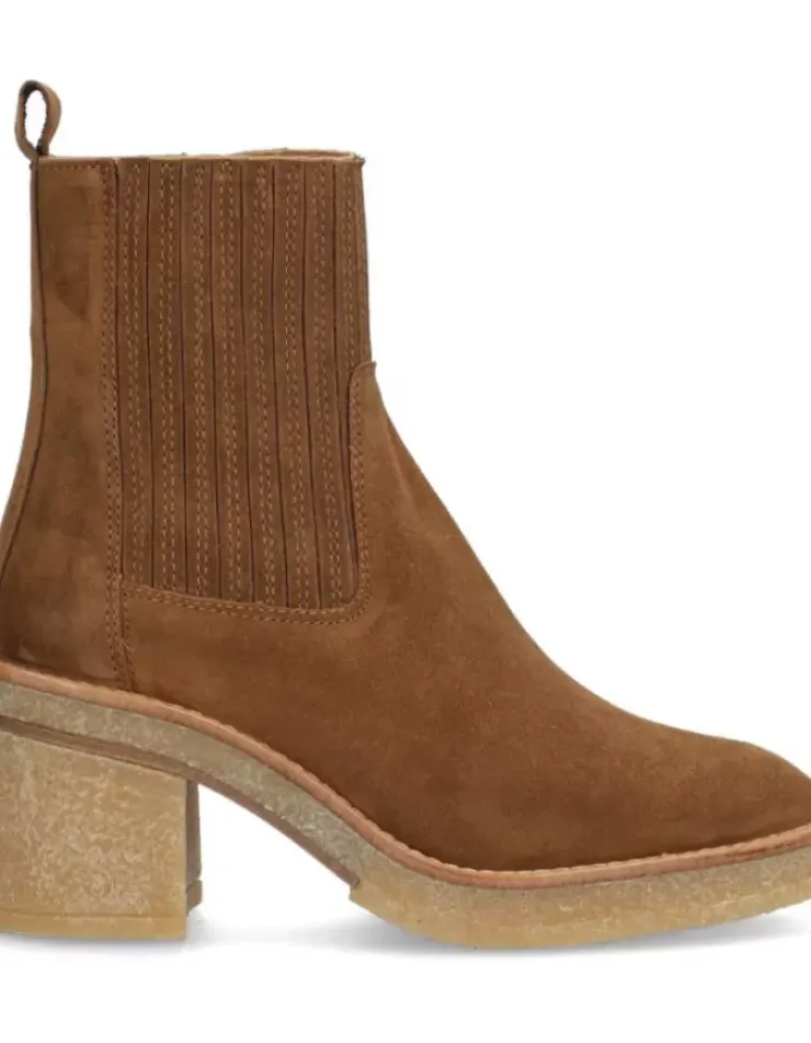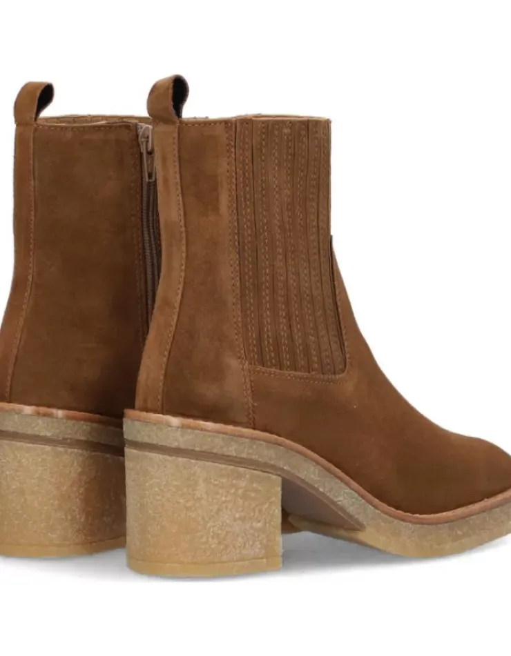 Botin Para Mujer Alpe Janis, Fabricado En Piel (Baby Silk) De Color Cuero Con Tacon De 7,5 Cm, Suela Antideslizante Y Puntera Redonda, Con Cierre Mediante Cremallera Y Cana Baja.
