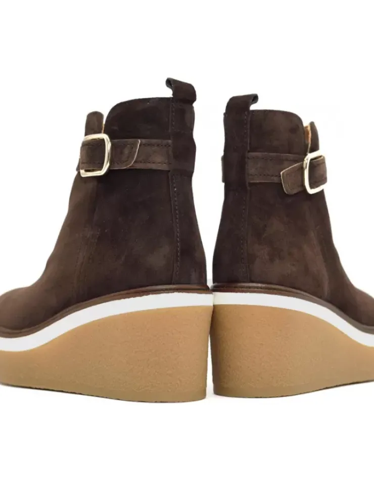 Botin Para Mujer Alpe Kiara, Fabricado En Piel (Baby Silk) De Color Cafe Sin Tacon, Suela Antideslizante Y Puntera Redonda, Con Cierre Mediante Cremallera Y Cana Baja.