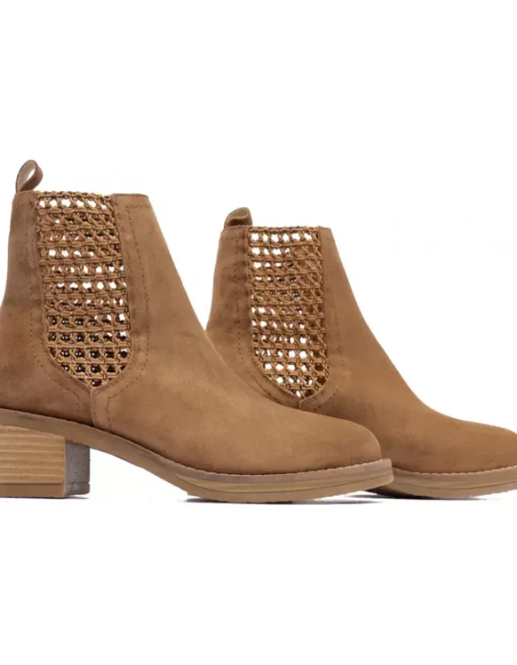 Botin Para Mujer Alpe Madame, Fabricado En Piel (Baby Silk) De Color Cuero Con Tacon De 5 Cm, Suela Antideslizante Y Puntera Redonda, Sin Cierre Y Cana Baja.