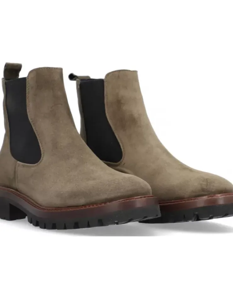 Botin Para Mujer Alpe Militare, Fabricado En Piel (Baby Silk) De Color Kaki Con Tacon De 3,5 Cm, Suela Antideslizante Y Puntera Redonda, Sin Cierre Y Cana Baja.