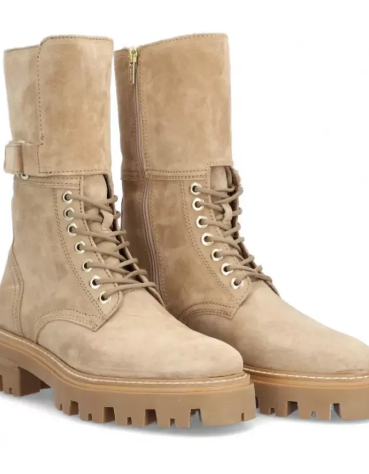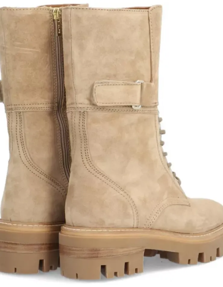 Bota Para Mujer Alpe Monza, Fabricada En Piel (Baby Silk) De Color Noisette Con Tacon De 5 Cm, Suela Antideslizante Y Puntera Redonda, Con Cierre Mediante Cremallera Baja.