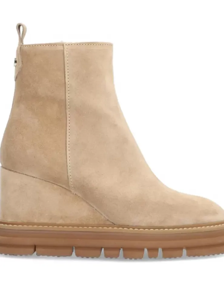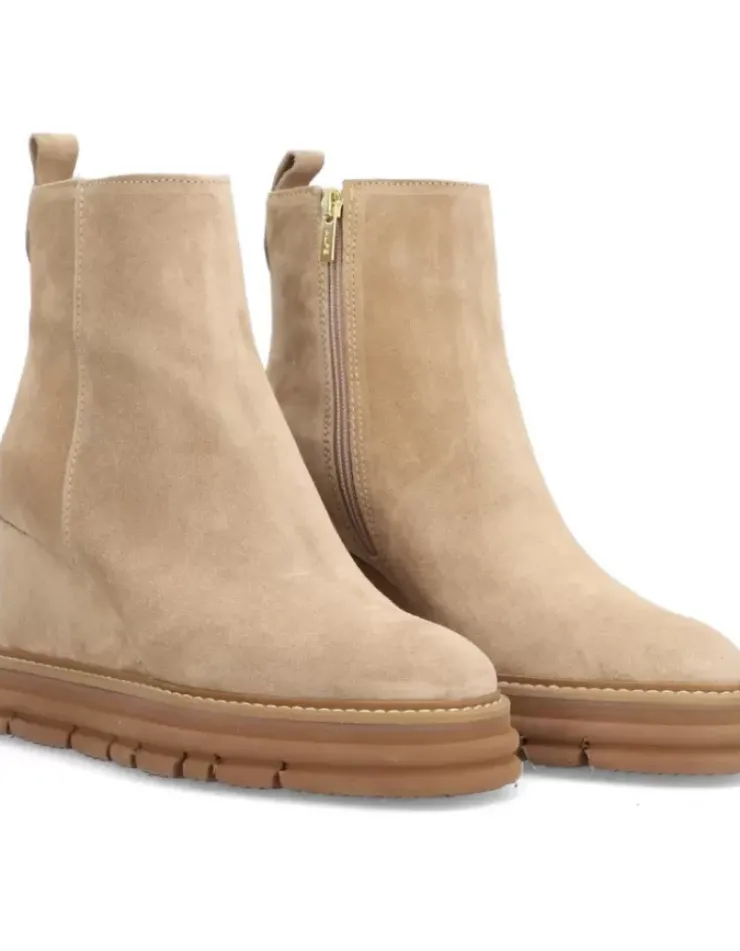 Botin Para Mujer Alpe Sidney, Fabricado En Piel (Baby Silk) De Color Noisette Con Cuna De 8 Cm, Suela Antideslizante Y Puntera Redonda, Con Cierre Mediante Cremallera Y Cana Media.