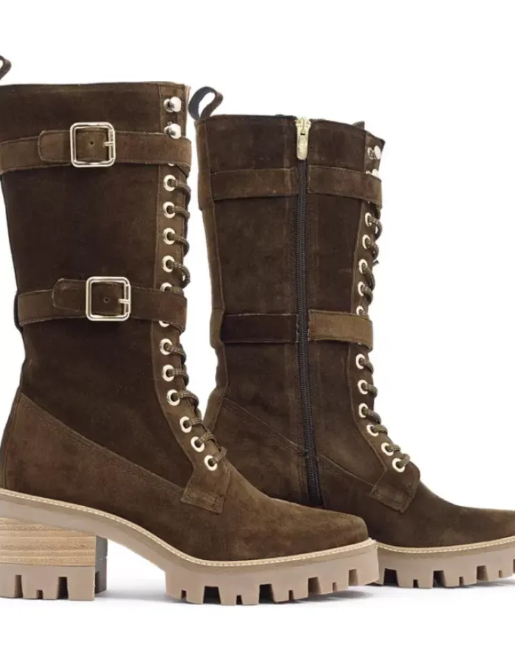 Bota Para Mujer Alpe Amelie, Fabricada En Piel (Baby Silk) De Color Arabica Con Tacon De 6 Cm, Suela Antideslizante Y Puntera Redonda, Con Cierre Mediante Cremallera Y Cana Alta.