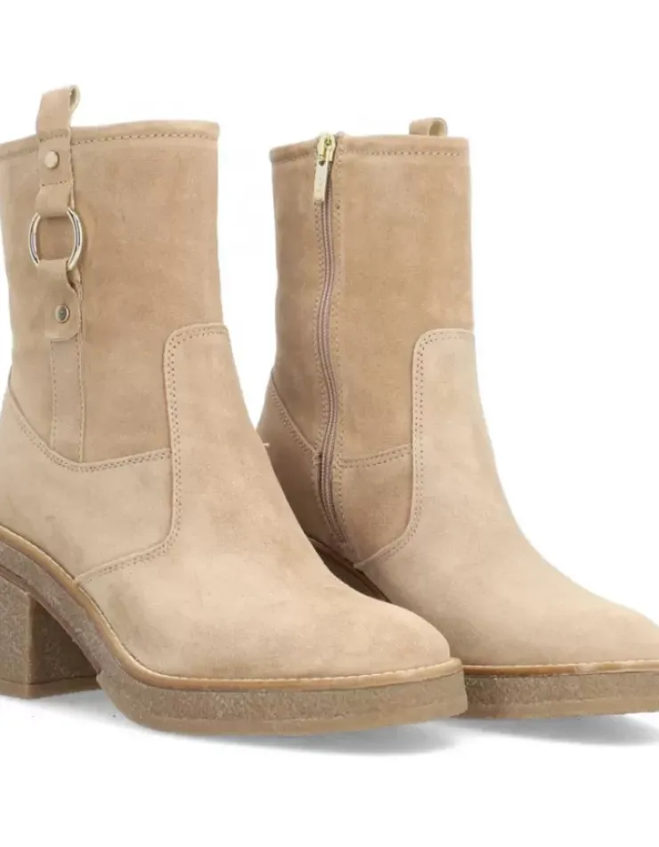 Botin Para Mujer Alpe Janis, Fabricado En Piel (Baby Silk) De Color Noisette Con Tacon De 7,5 Cm, Suela Antideslizante Y Puntera Redonda, Con Cierre Mediante Cremallera Media.