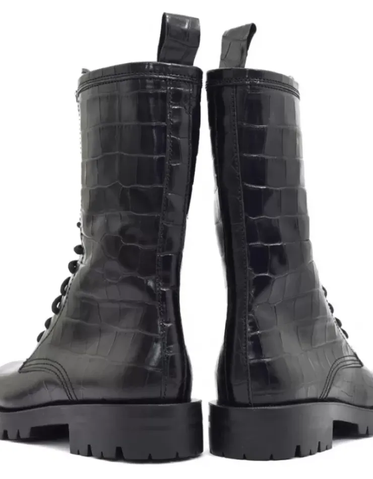 Bota Para Mujer Alpe Militare, Fabricada En Piel (Coco) De Color Negro Con Tacon De 3,5 Cm, Suela Antideslizante Y Puntera Redonda, Con Cierre Mediante Cremallera Y Cana Media.